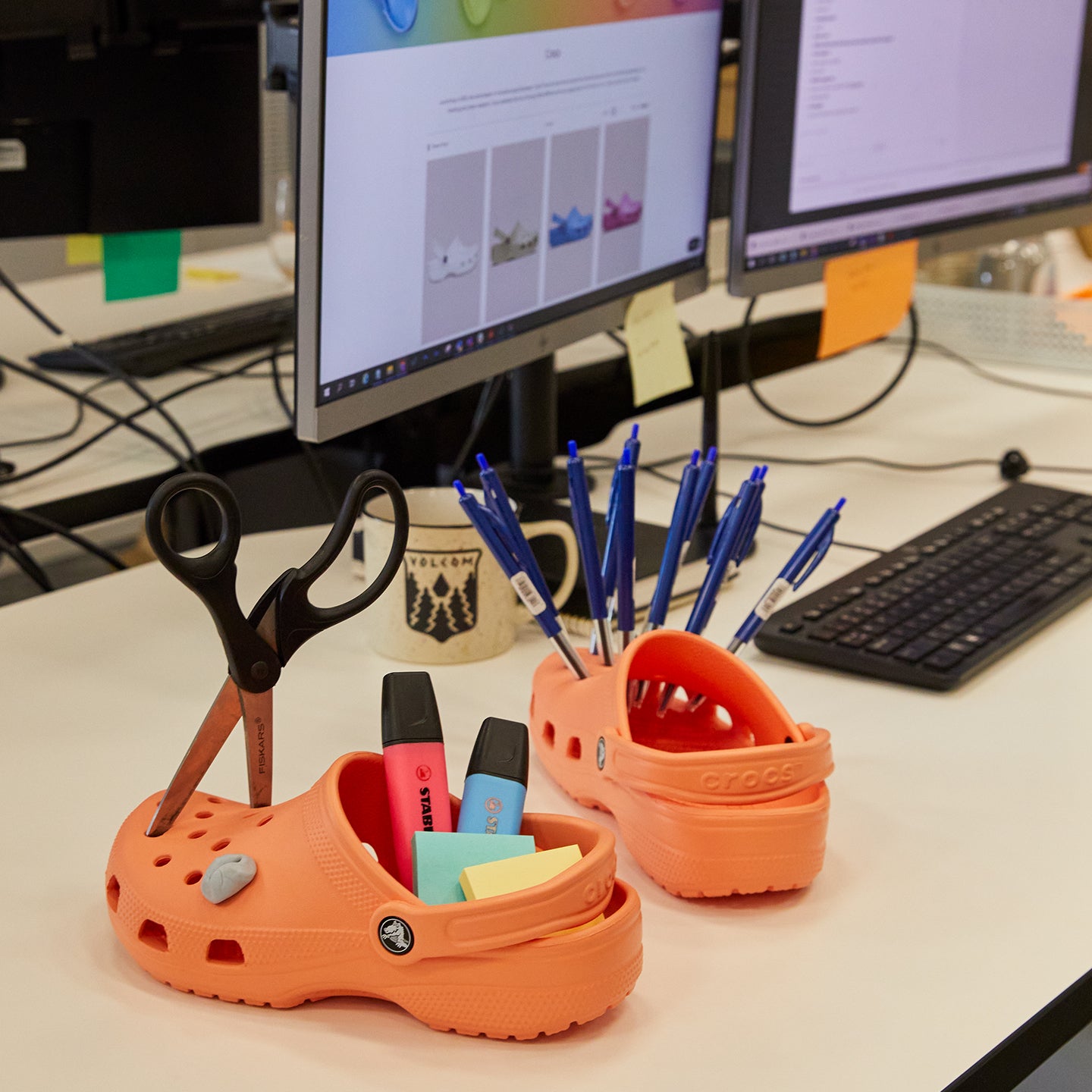 2. Add a pop of colour to your desk and use your trusty Crocs as a pencil case. Hedgehog chic? We think so.