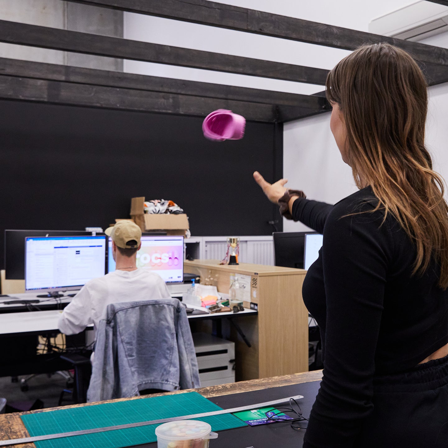 8. The alternative office slack. The internet is down and you need to get a hold of that colleague across the way. Don't pick up the phone - just give 'em a friendly tap on the shoulder with the lightweight goodness of your Crocs and they'll be right over.