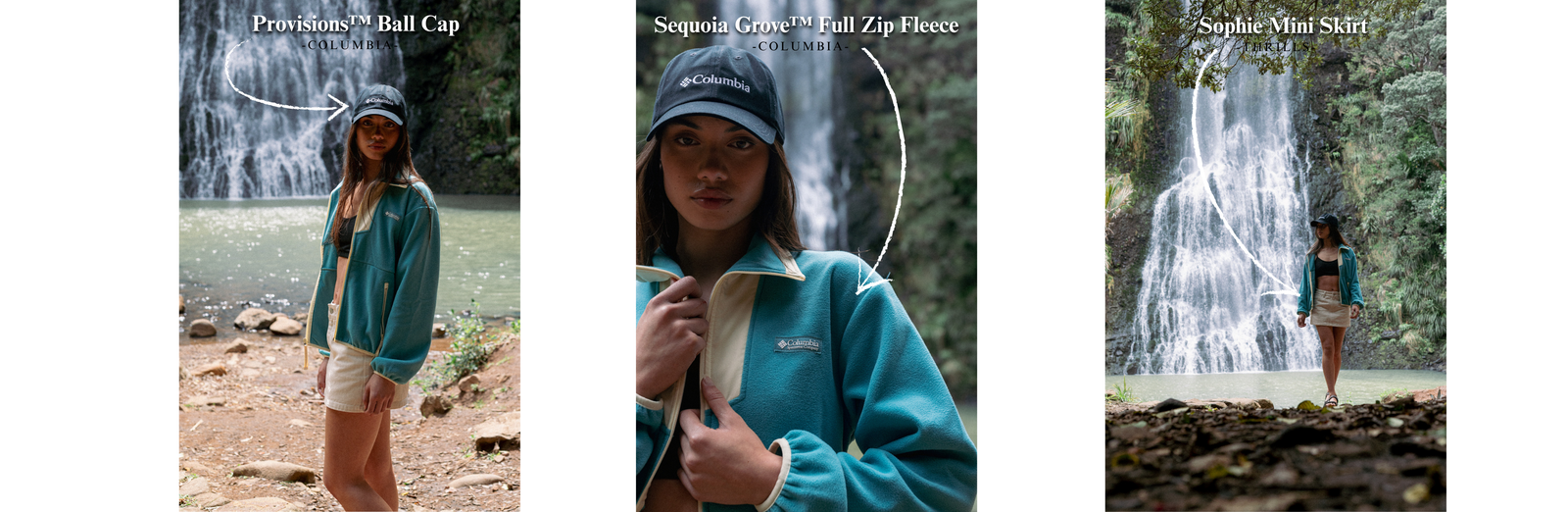 Going for a little sporty chic on this one, the Sequoia Grove™ Full Zip Fleece still keeps things classic but with a touch of intrigue from the dreamy teal wash. Slapping on the Provisions™ Ball Cap brings in a subtle athletic edge, not to mention some much needed shade from that lethal Aotearoa sun! Our Sophie Skirt from Thrills lets you step into a more feminine realm of style while still allowing for movement and breathability.